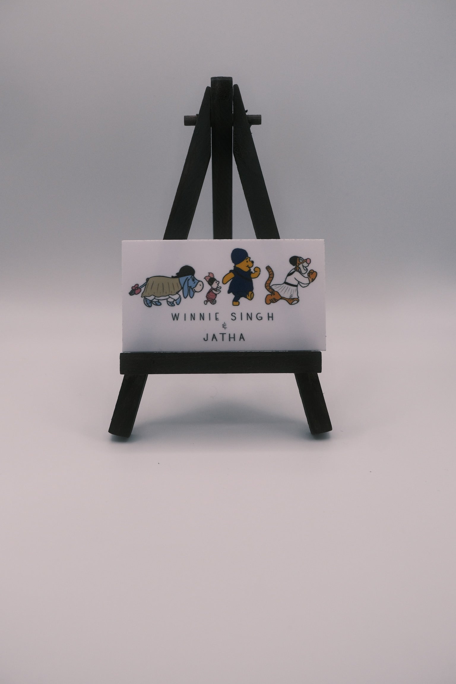 3x2 inch sticker of a yellow bear and jatha/friends, skipping together