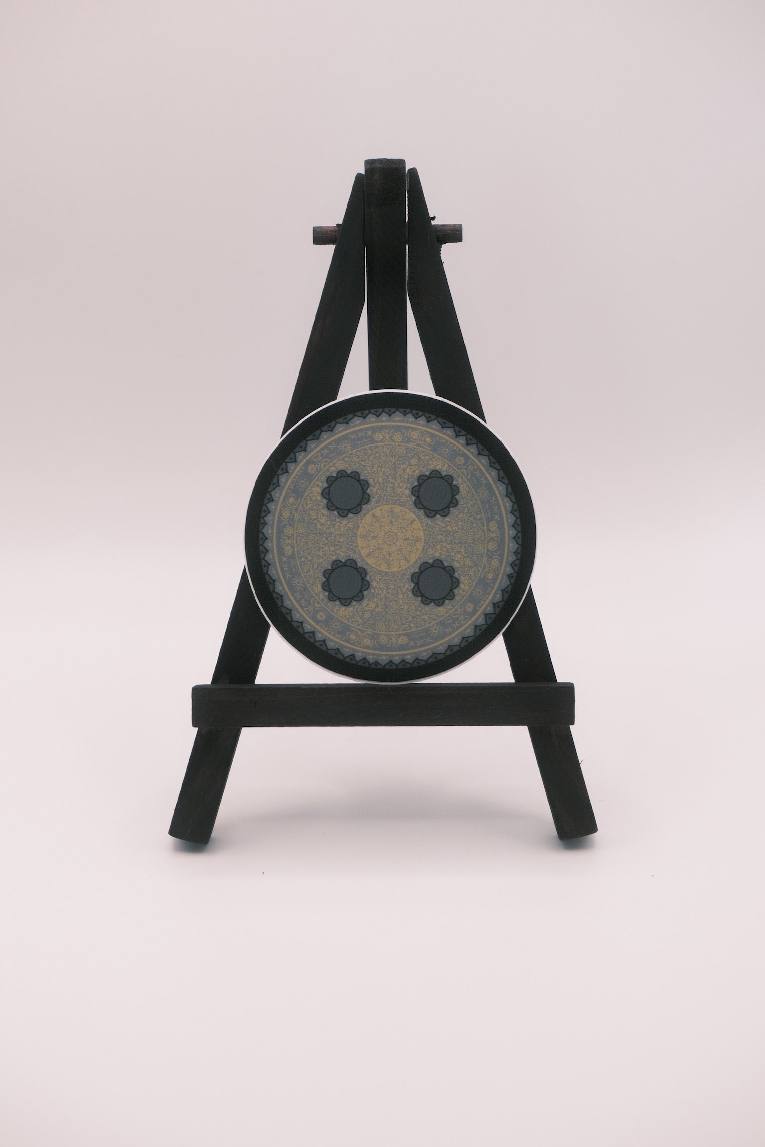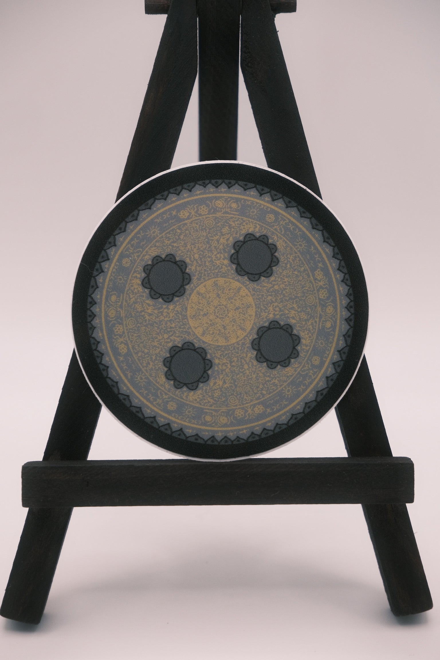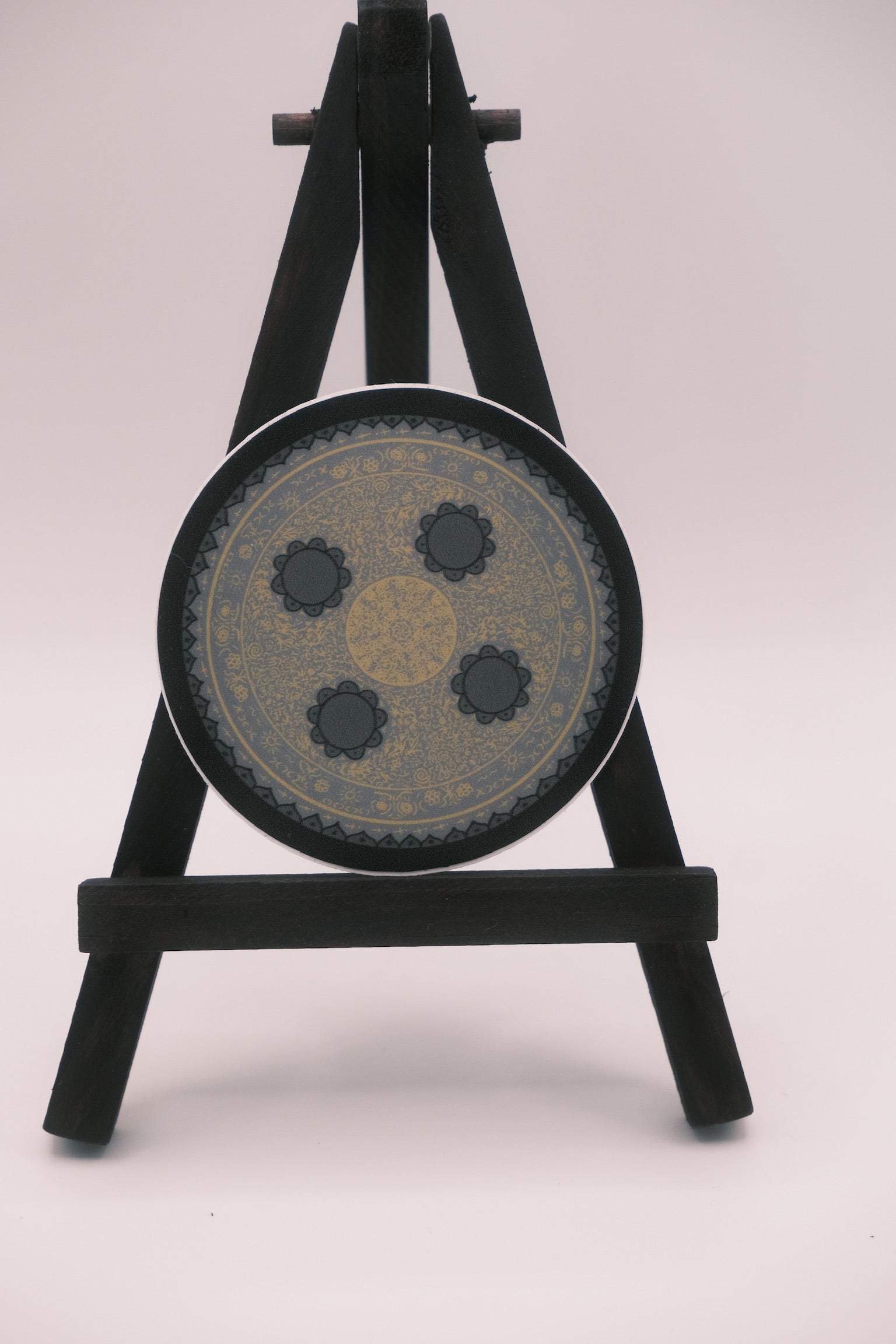 2.5x2.5 inch sticker of a dhaal with engraving design,
