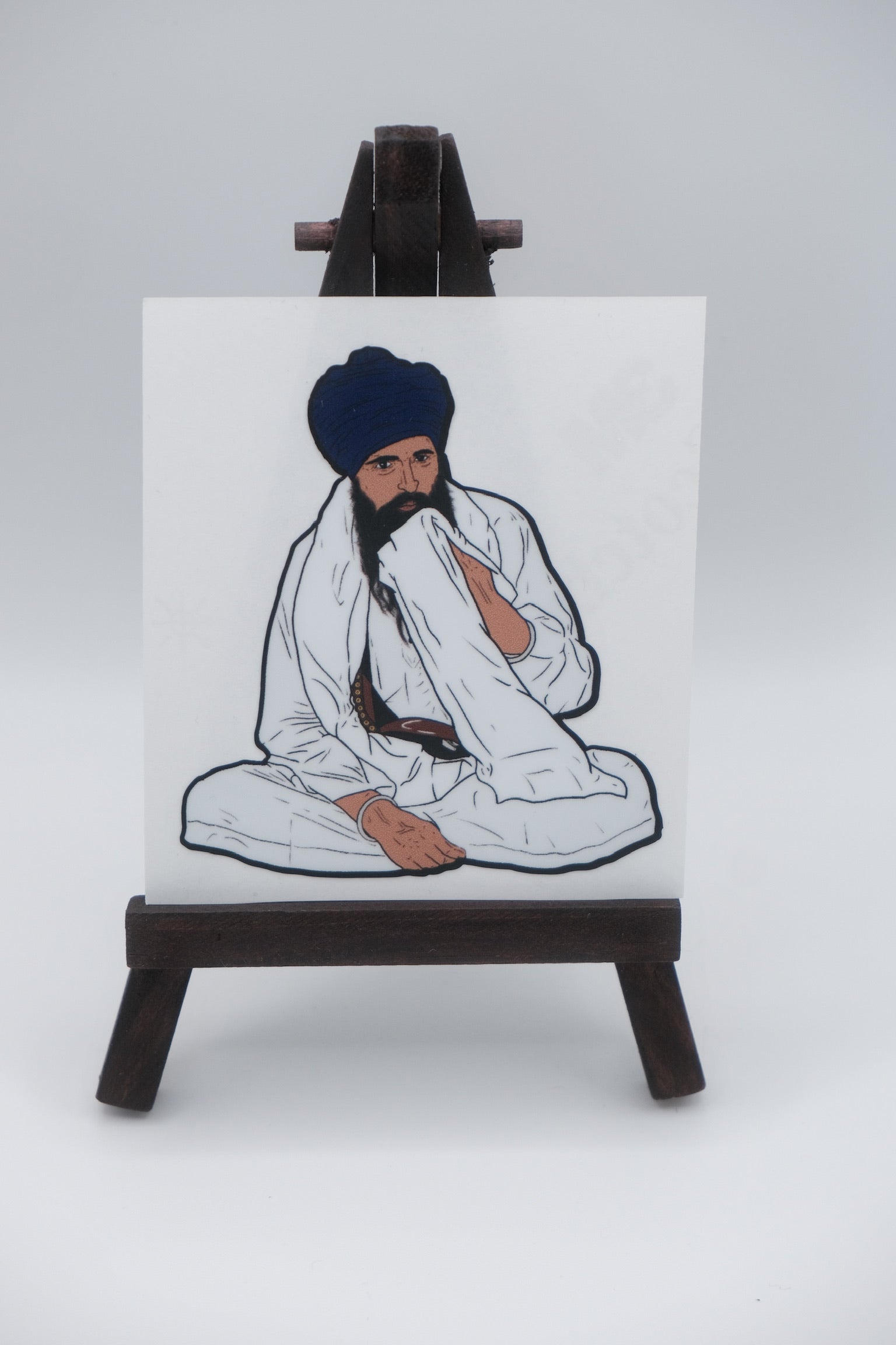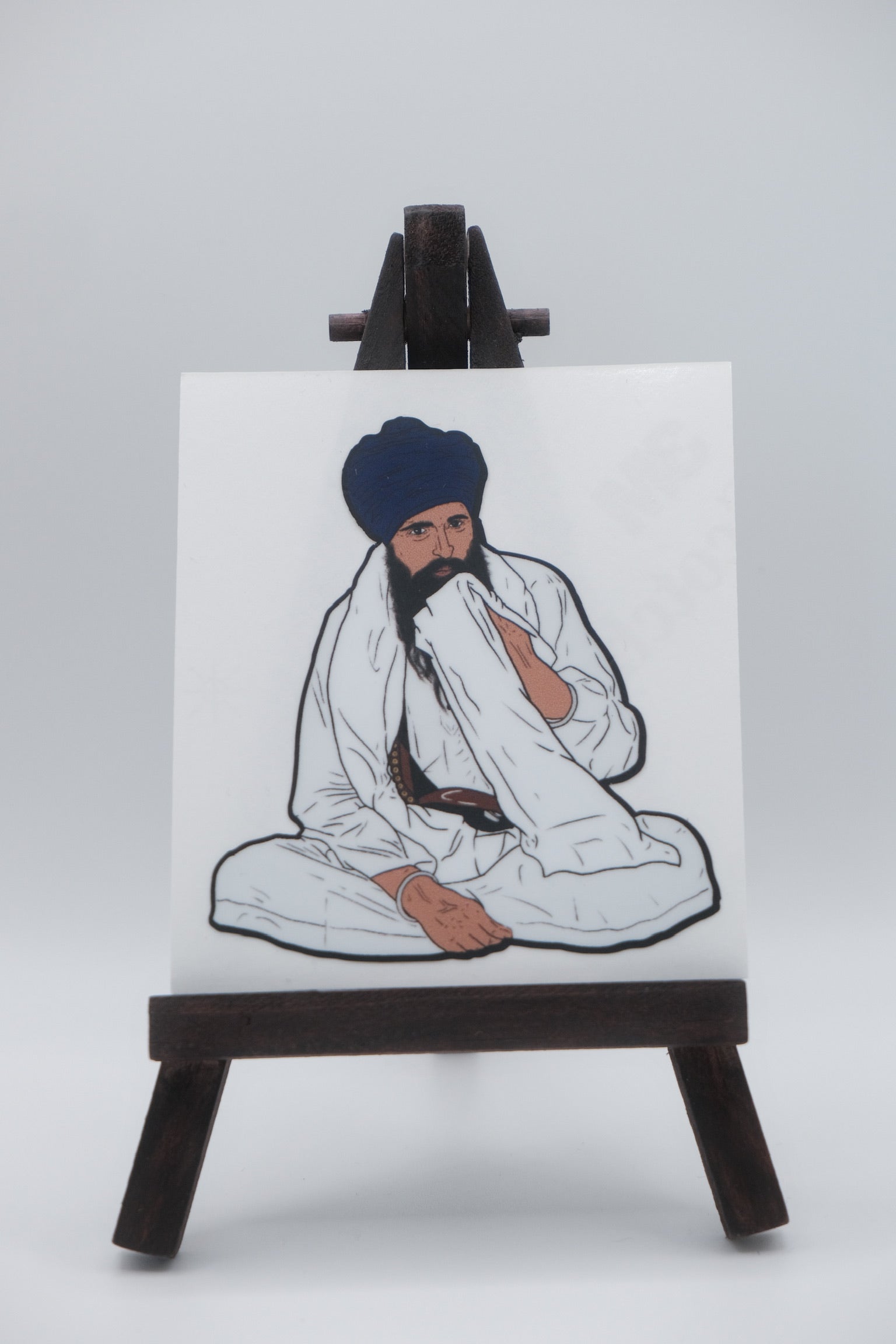 3x3 sticker of Sant Baba Jarnail Singh Ji Khalsa Bhindranwale sitting.